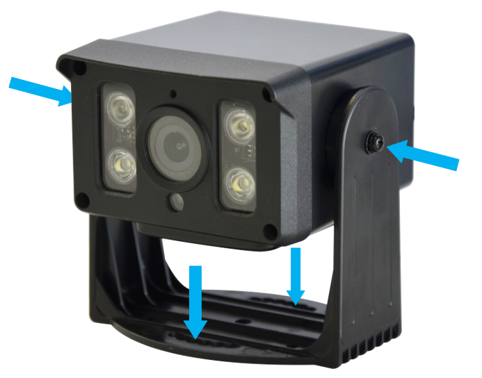 底座固定好后,将摄像头卡在底座上,把画面调整至需要监控的区域后,锁紧两侧螺丝,将摄像头固定。