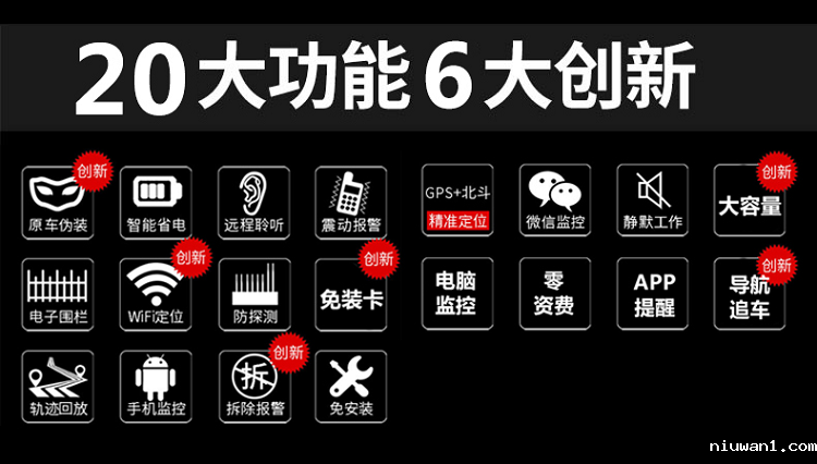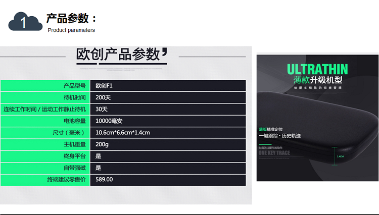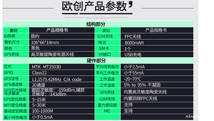 安装:不用安装,直接充电,充一次电用30天(通过调整回传时间工作时间可以更长)北斗定位:属于中国的卫星,定位会比GPS准,误差一般在5米内,但是覆盖率不是非常的高,欧创芯片采用2503芯片兼容:北斗卫星+GPS卫星定位特点:定位会比单GPS更准