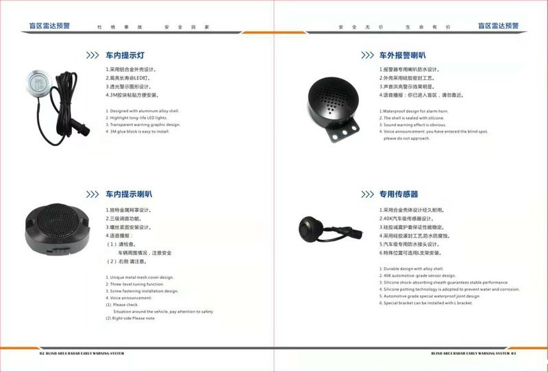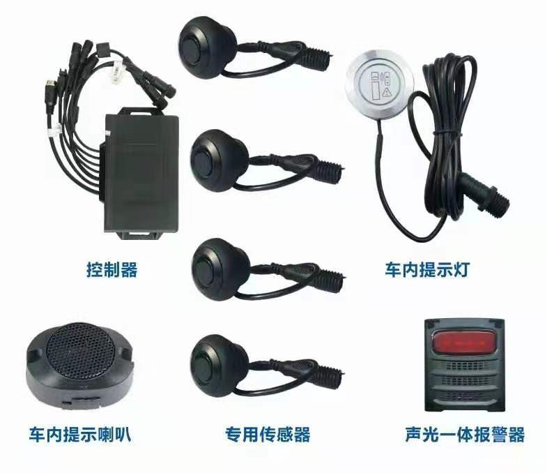 货车盲区雷达预警系统是一款智能型预警系统产品由2组语音喇叭1组LED警示灯结合超声波雷达智能运算给予驾驶员和行人车辆提供实时的安全预警.