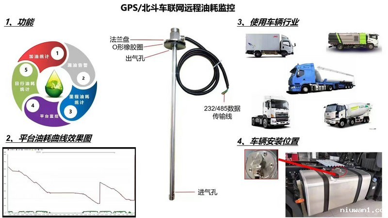 产品采用的是由本公司自主研发并国内超声波油耗设备技术,目前广泛应用于汽车油耗监控项目;并远销海外。